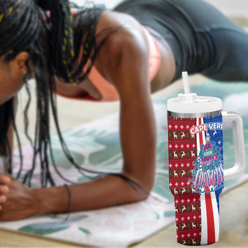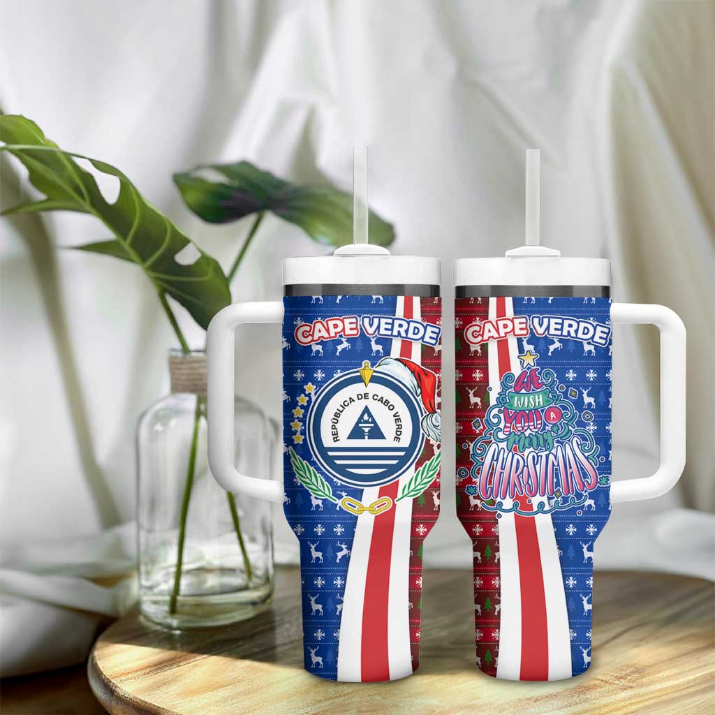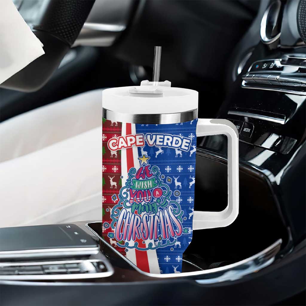 Cape Verde Christmas Tumbler With Handle Festive Pattern Christmas Tree and National Emblem Motif
