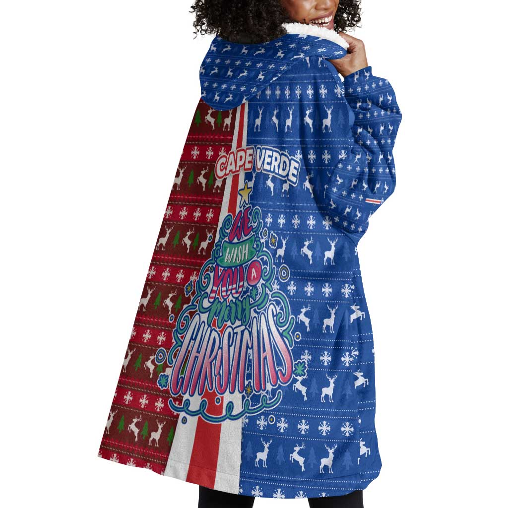 Cape Verde Christmas Wearable Blanket Hoodie Festive Pattern Christmas Tree and National Emblem Motif