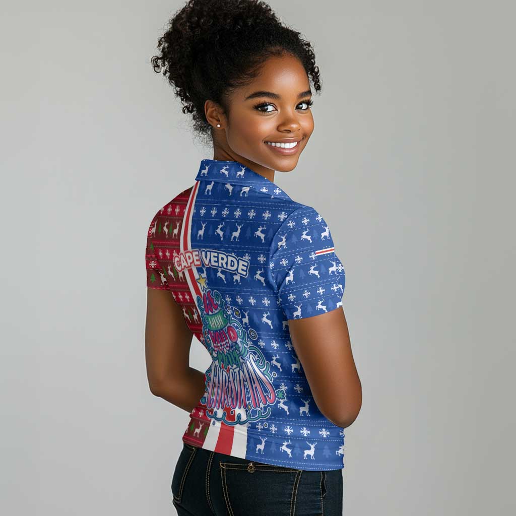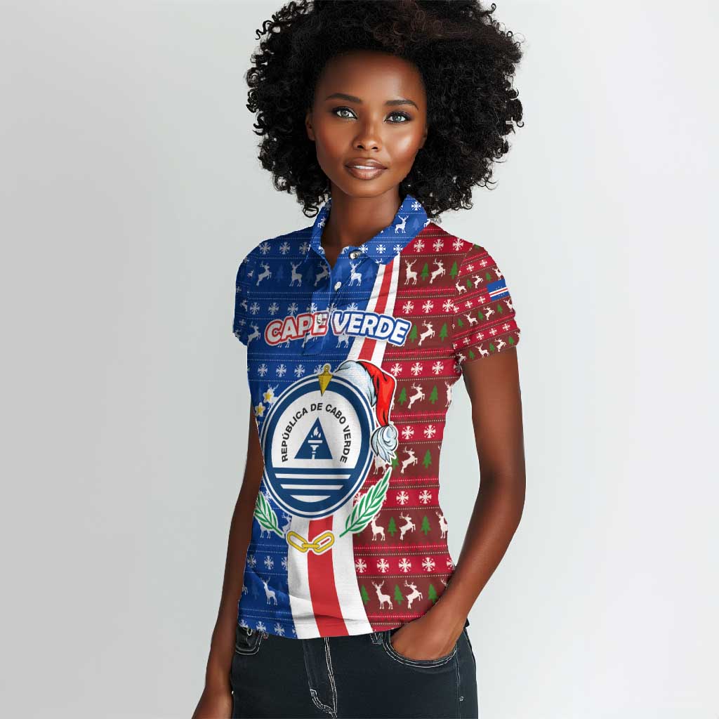 Cape Verde Christmas Women Polo Shirt Festive Pattern Christmas Tree and National Emblem Motif