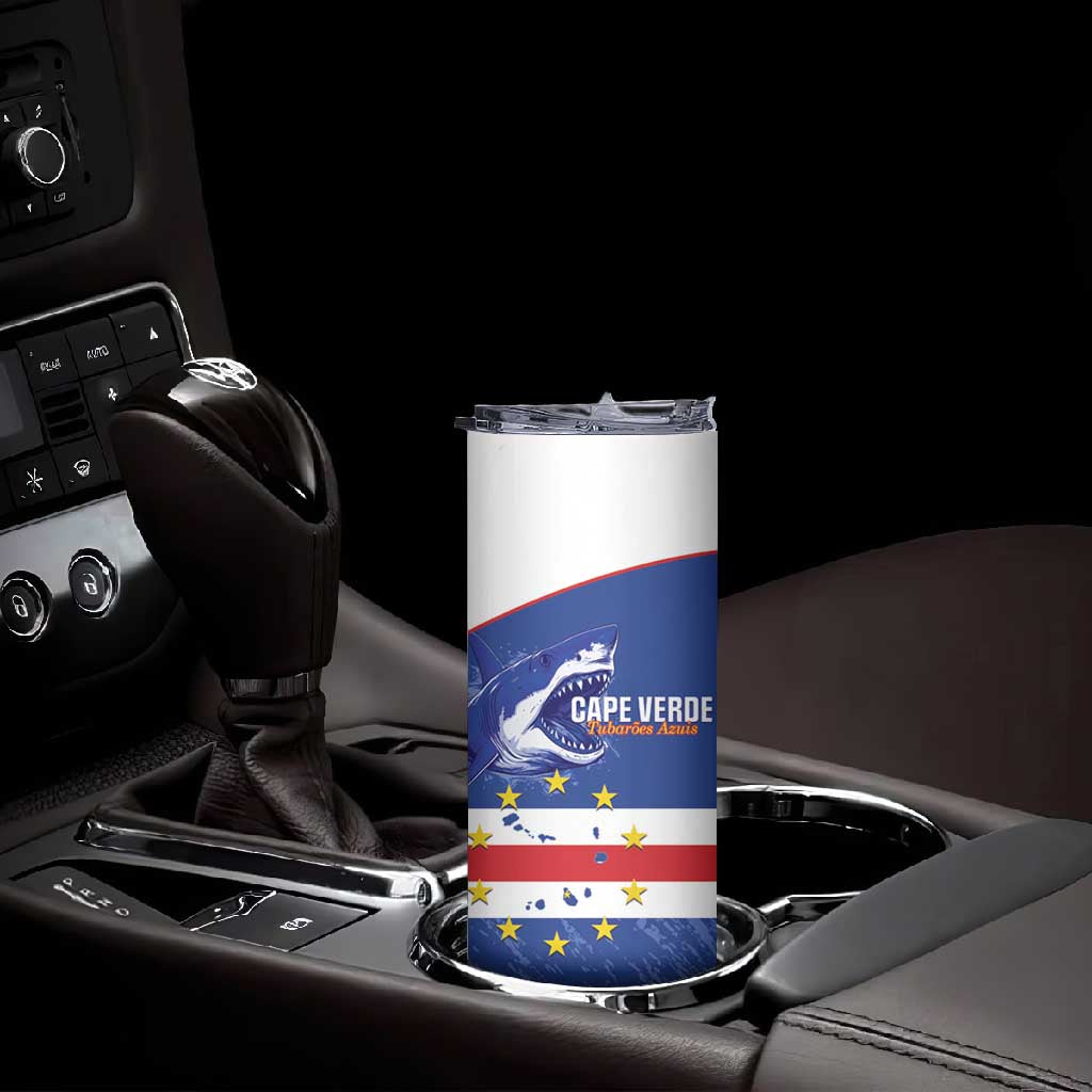 Cape Verde Football Custom Skinny Tumbler Come On Tubaroes Azuis Shark