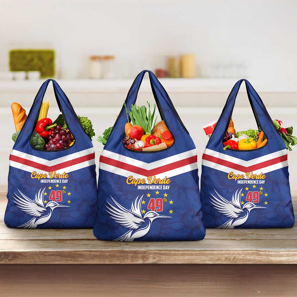 Cape Verde Independence Day Grocery Bag Gerbera Daisy Pattern