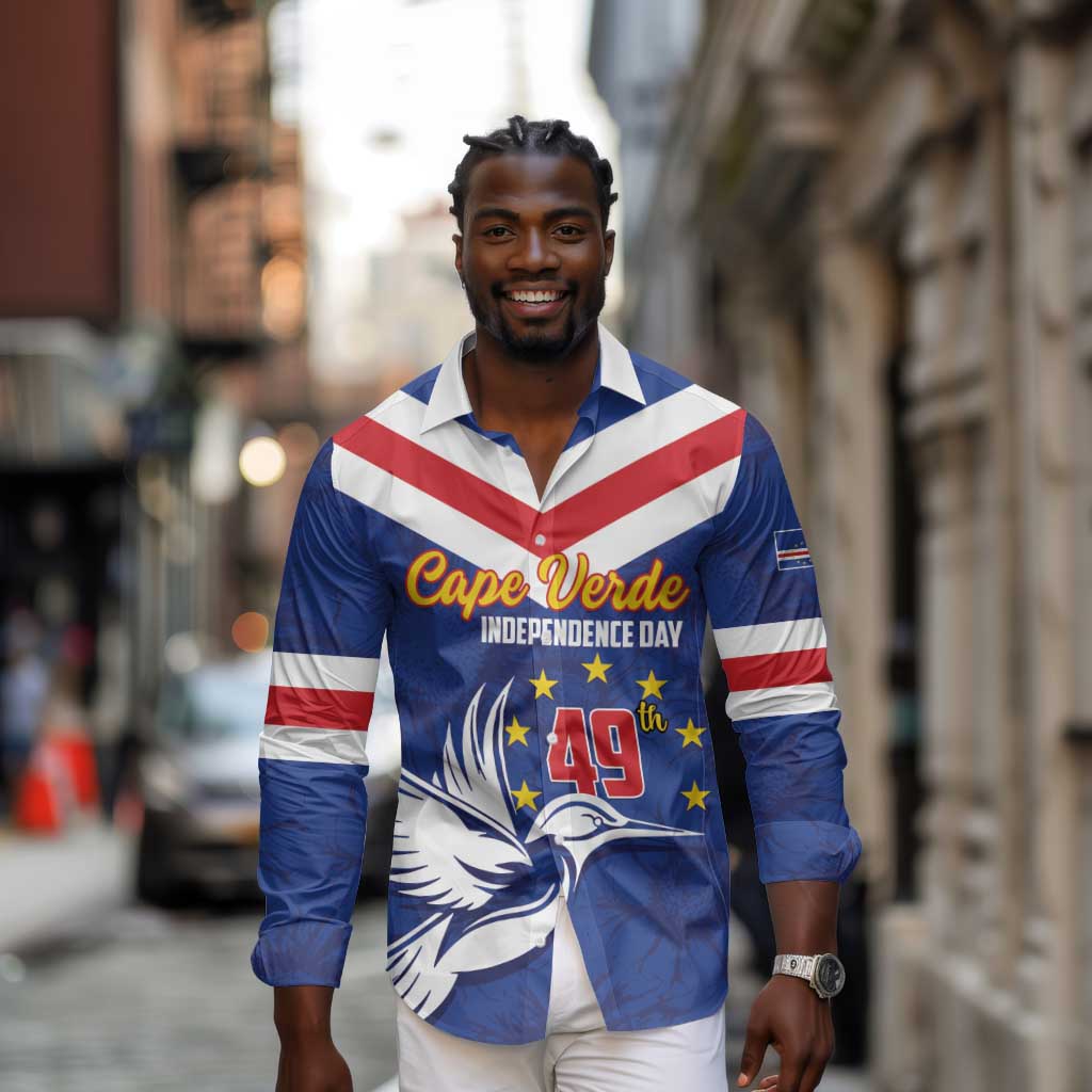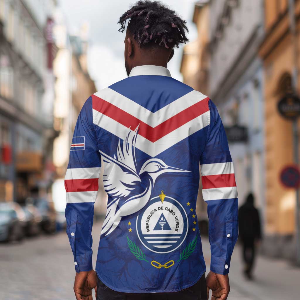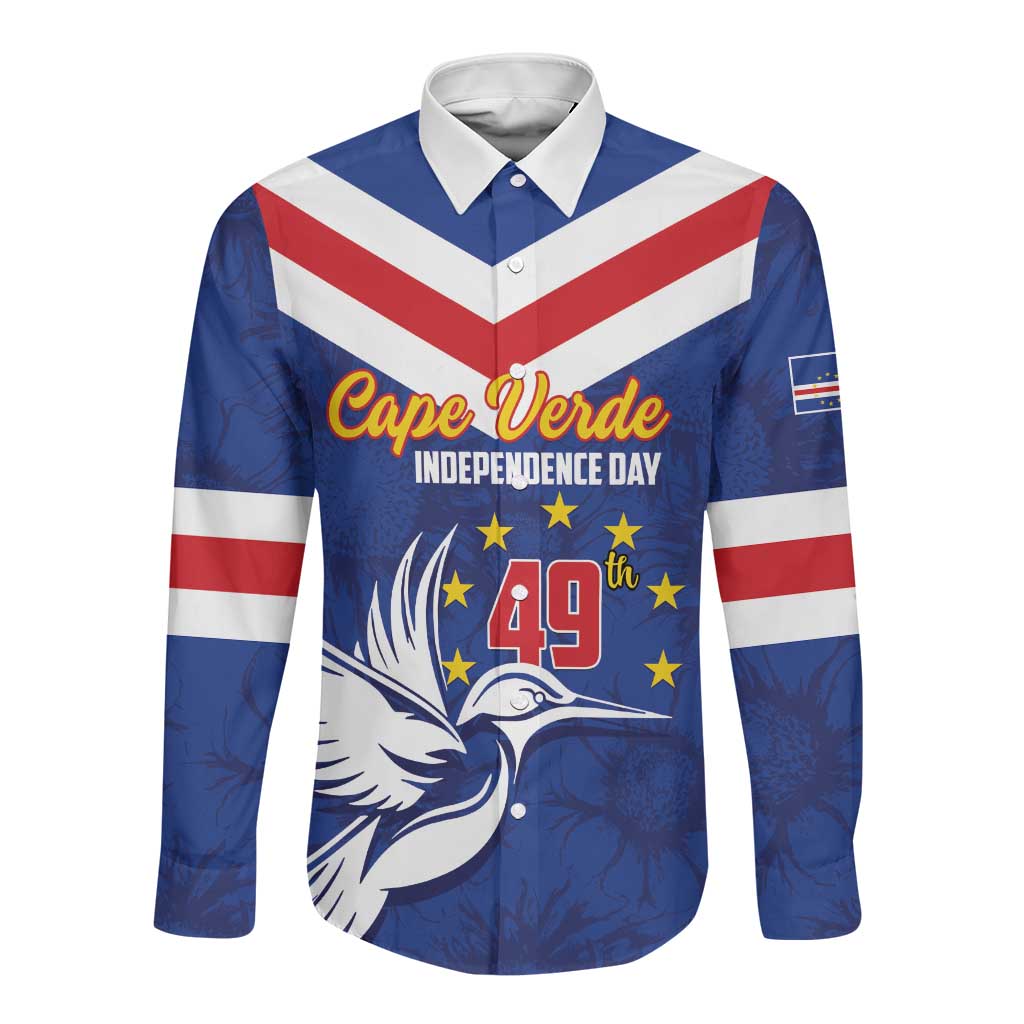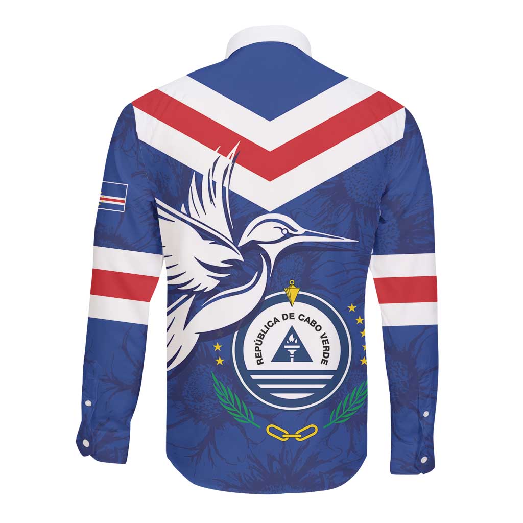 Cape Verde Independence Day Long Sleeve Button Shirt Gerbera Daisy Pattern