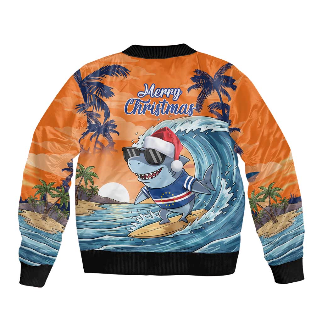 Christmas Cape Verde Sleeve Zip Bomber Jacket Funny Shark Surfing