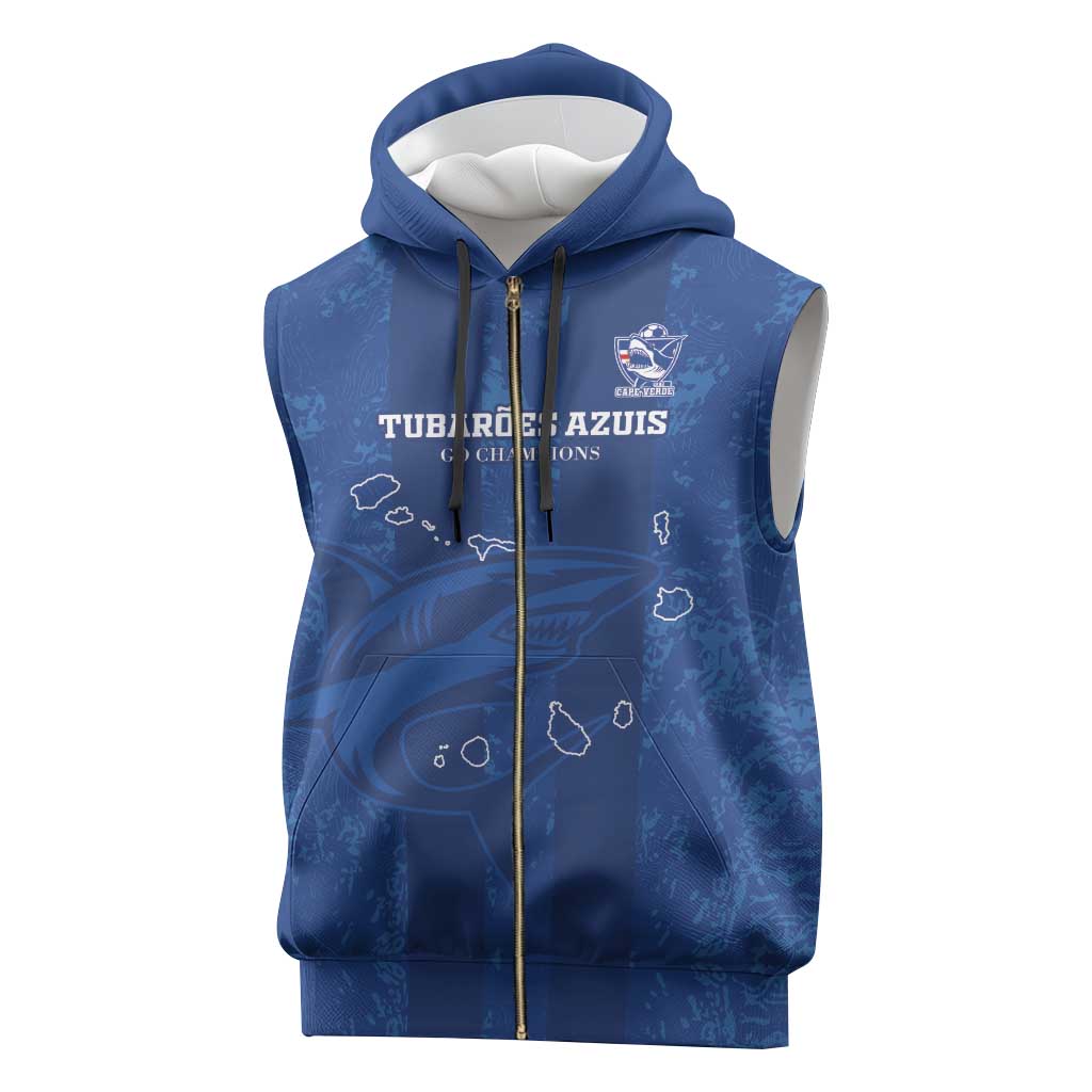 Custom Cape Verde Football Sleeveless Hoodie Go Champions Tubaroes Azuis