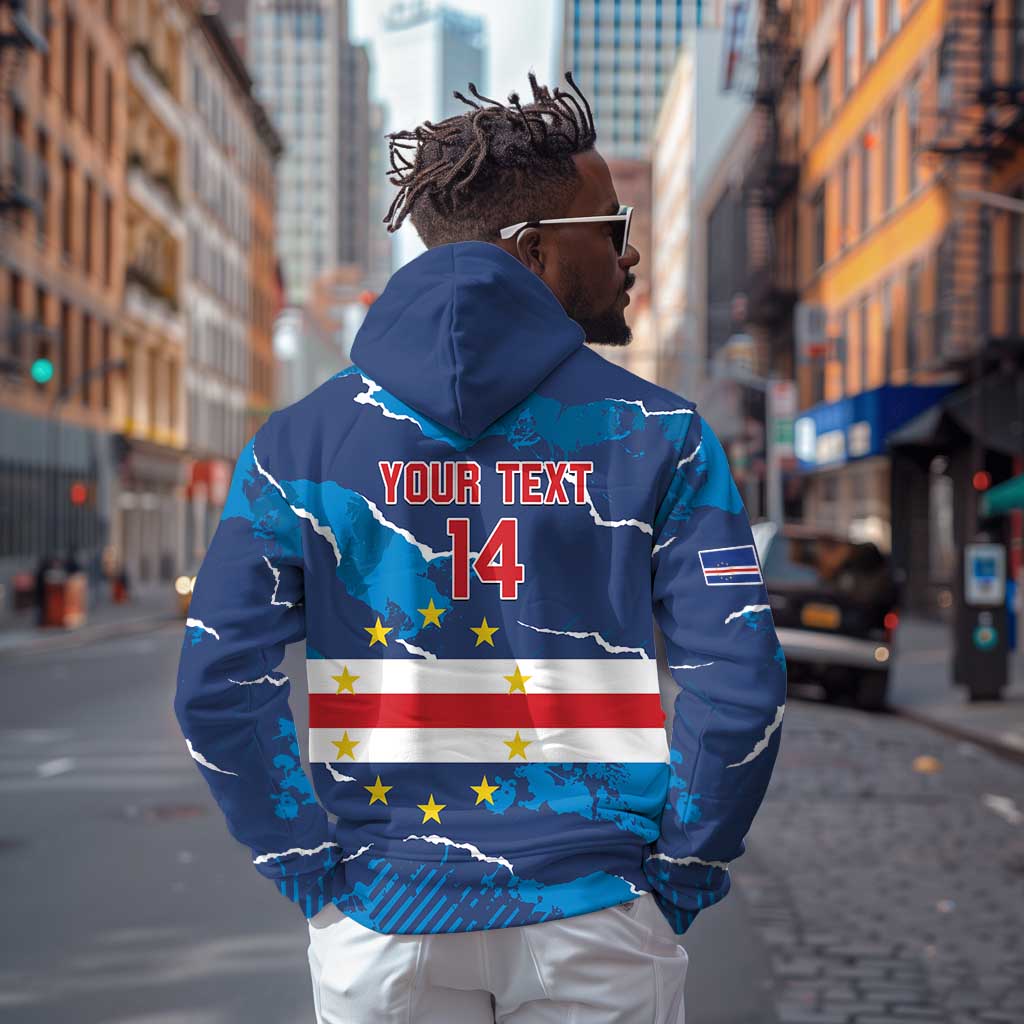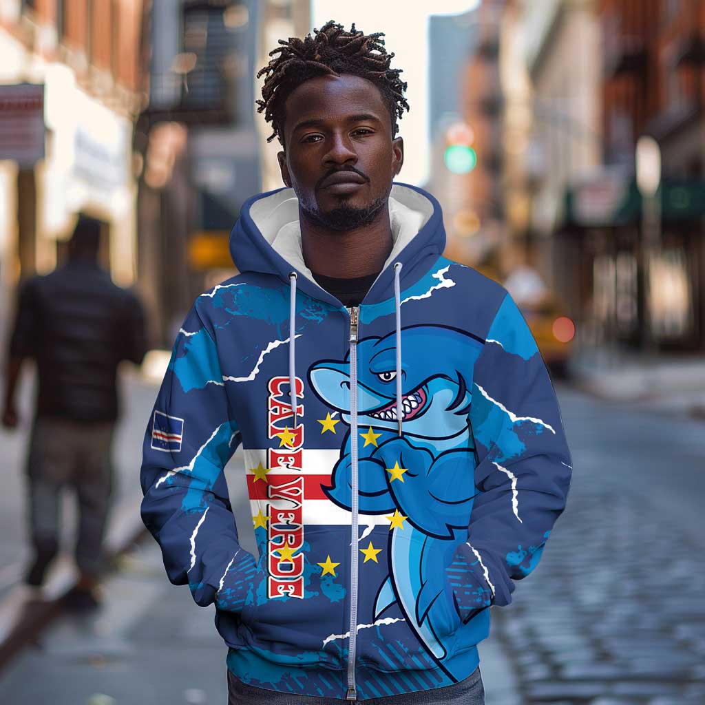 Custom Cape Verde Football Zip Hoodie Blue Sharks Mascot