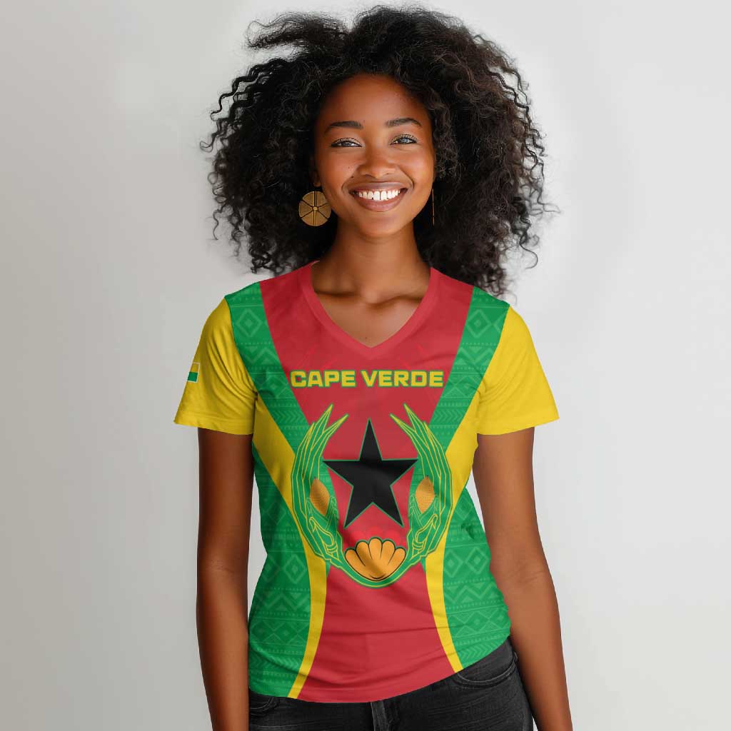 Personalised Afro Cape Verde (1975-1992) Women V-Neck T-Shirt Mix African Pattern