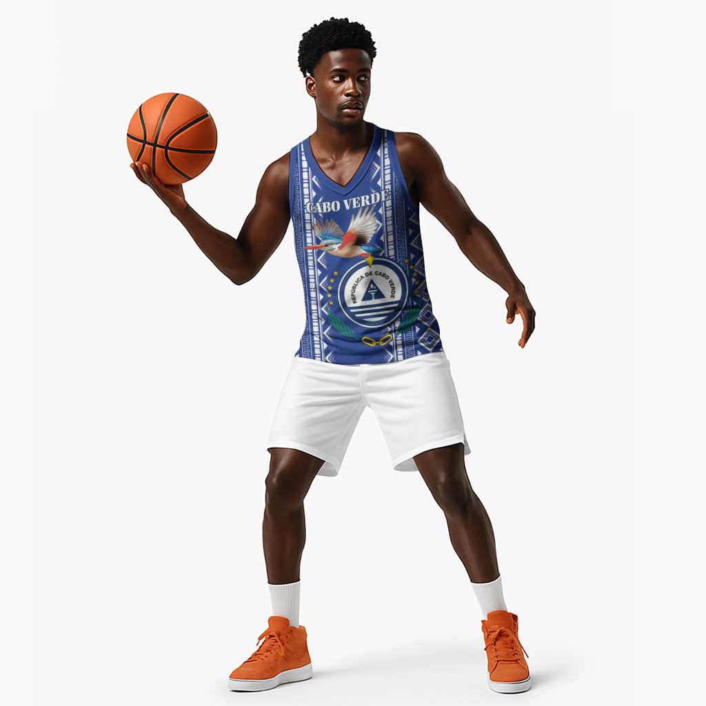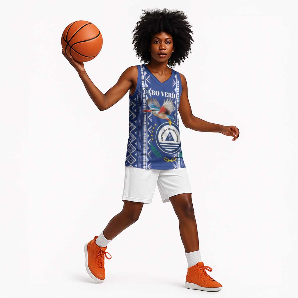 Personalised Cape Verde Basketball Jersey Grey Headed Kingfisher - Coat Of Arms