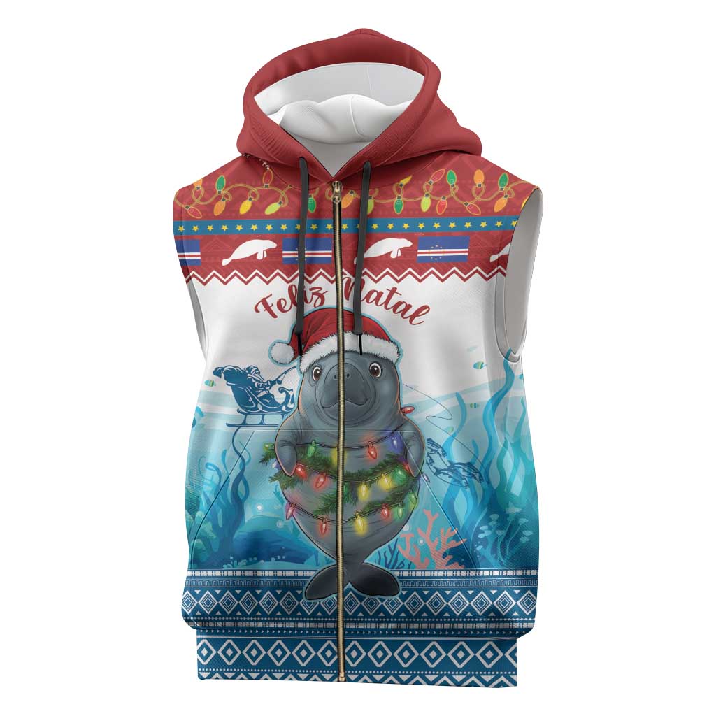 Personalised Cape Verde Christmas Sleeveless Zip Hoodie Manatee Feliz Natal