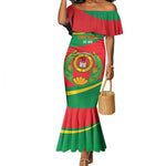 Design: Off-the-shoulder design with a body-hugging fit that flares out at the bottom, creating a stunning mermaid silhouette. Features vibrant, intricate patterns as shown in the pictures.