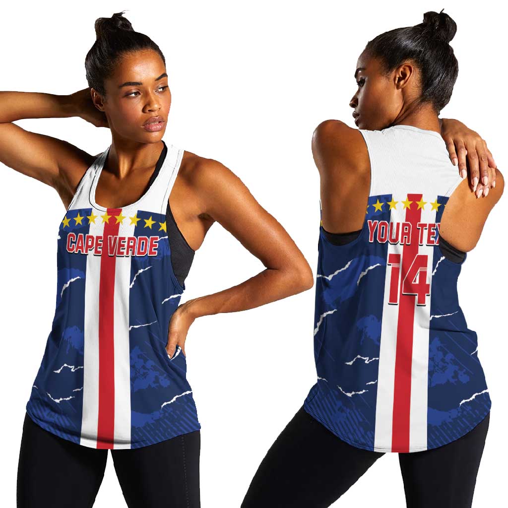 Custom Cape Verde Football Women Racerback Tank Blue Sharks Sporty