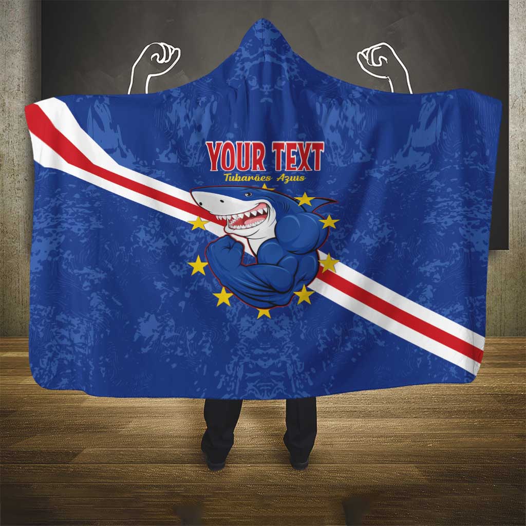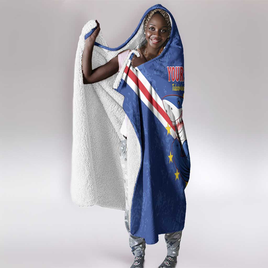 Custom Cabo Verde Football Hooded Blanket Go Tubaroes Azuis