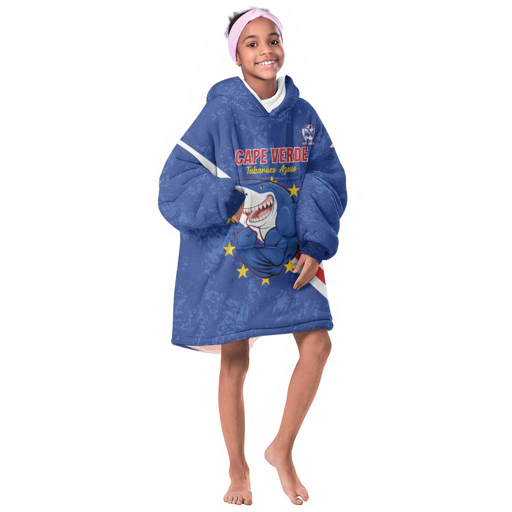 Custom Cabo Verde Football Kid Wearable Blanket Hoodie Go Tubaroes Azuis