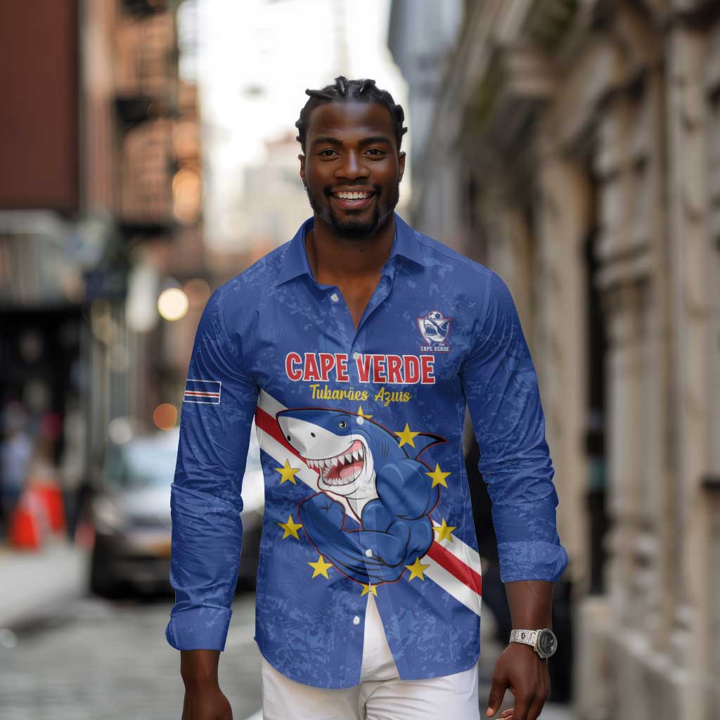 Custom Cabo Verde Football Long Sleeve Button Shirt Go Tubaroes Azuis