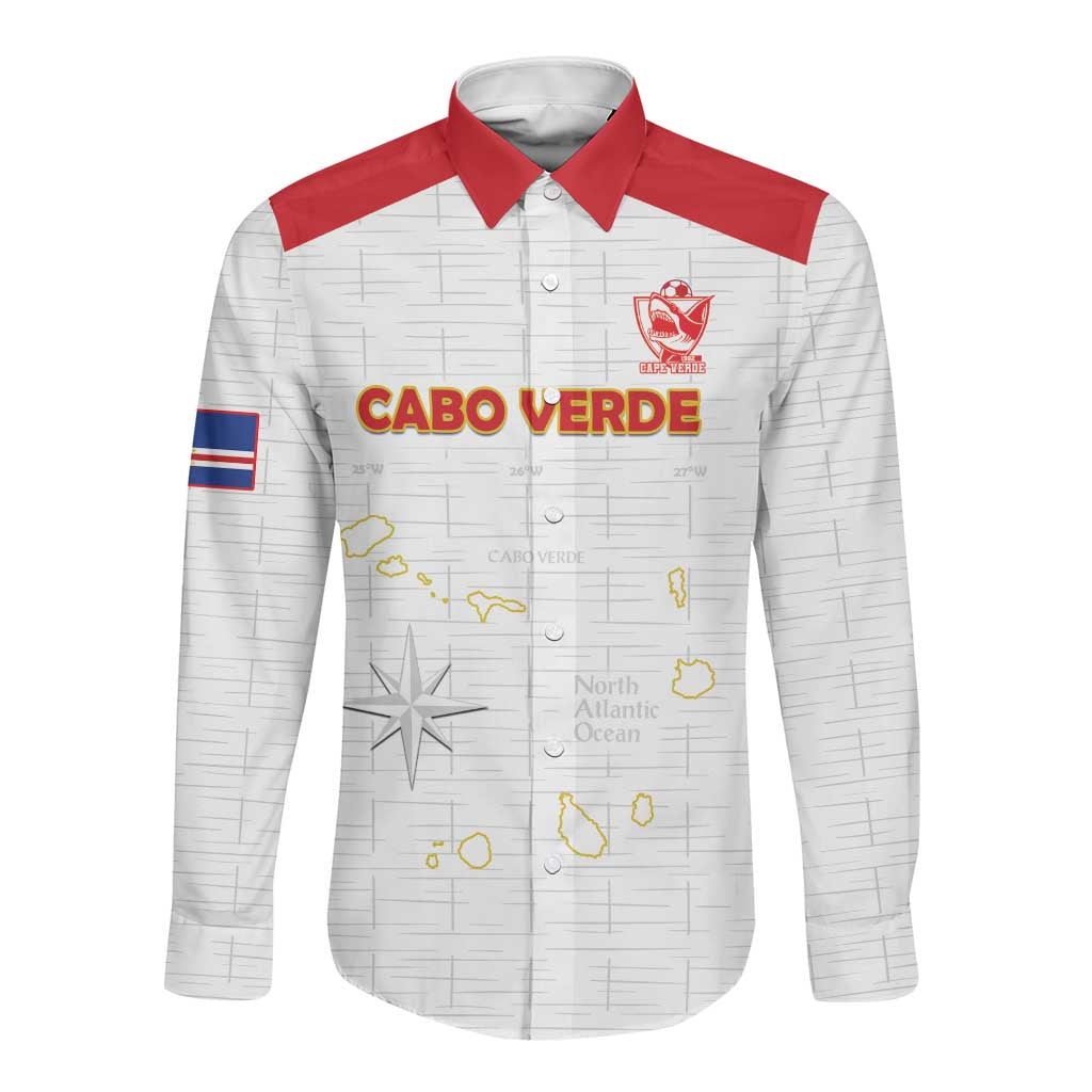 Custom Cabo Verde Football Long Sleeve Button Shirt Go Tubaroes Azuis Go - White LT15
