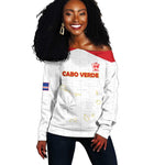 Custom Cabo Verde Football Off Shoulder Sweater Go Tubaroes Azuis Go - White