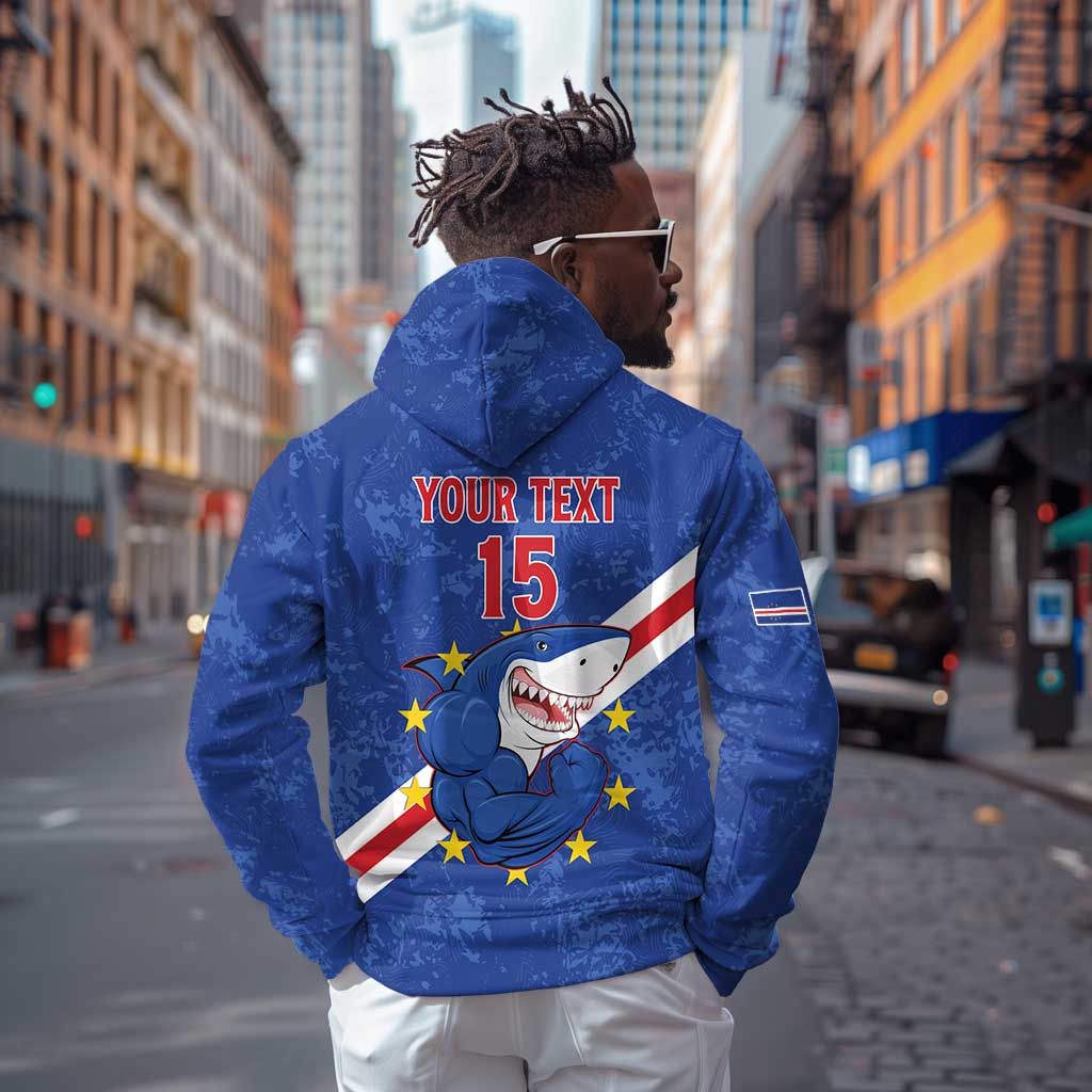 Custom Cabo Verde Football Zip Hoodie Go Tubaroes Azuis