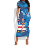 Custom Cape Verde Football Short Sleeve Bodycon Dress Blue Sharks Mascot