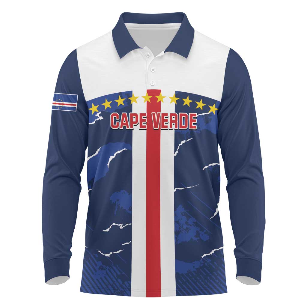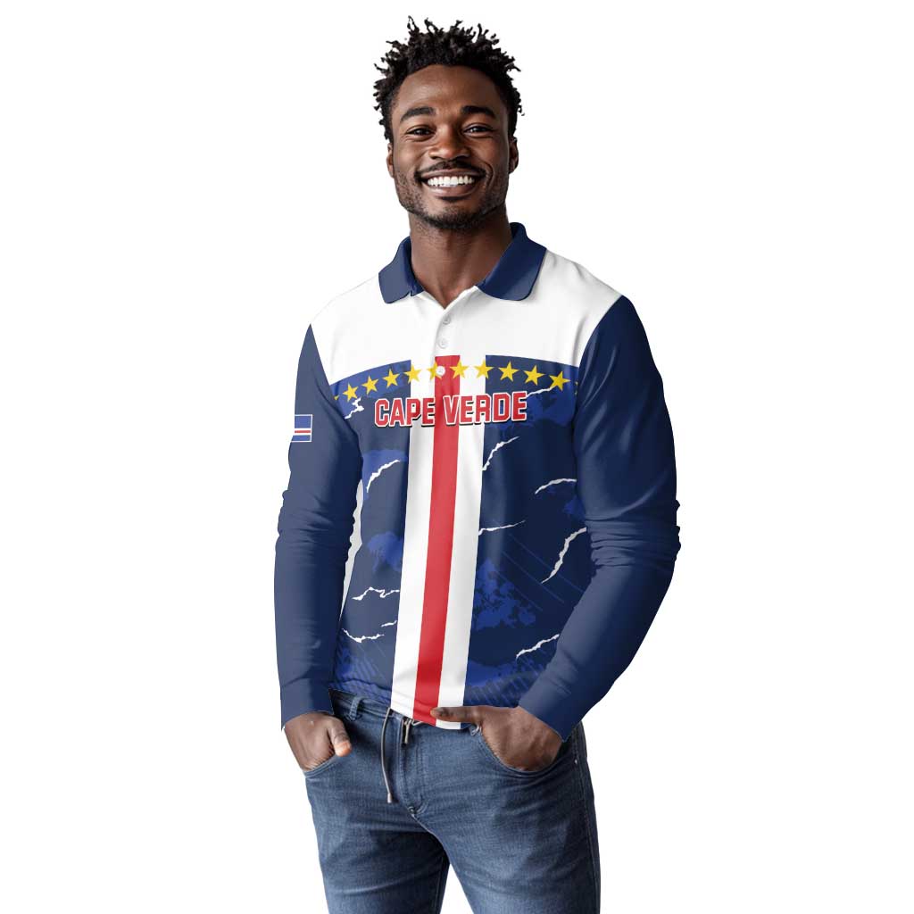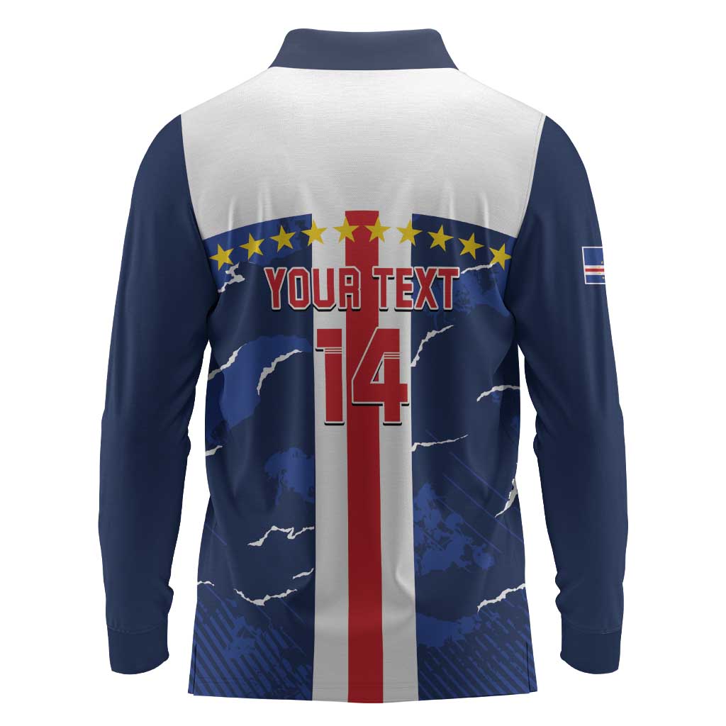 Custom Cape Verde Football Long Sleeve Polo Shirt Blue Sharks Sporty