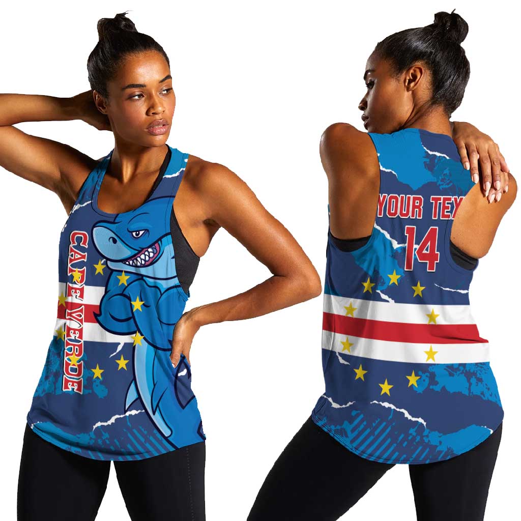 Custom Cape Verde Football Women Racerback Tank Blue Sharks Mascot