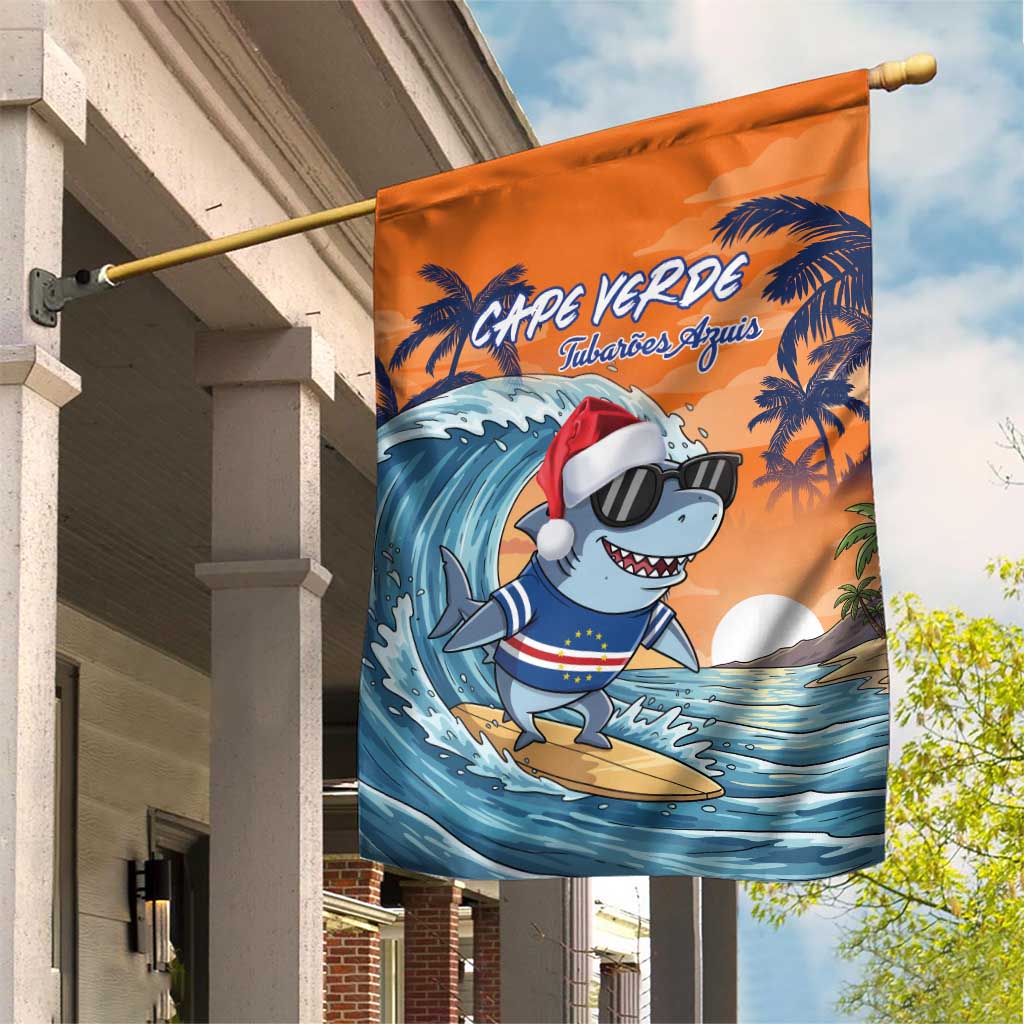Christmas Cape Verde Garden Flag Funny Shark Surfing