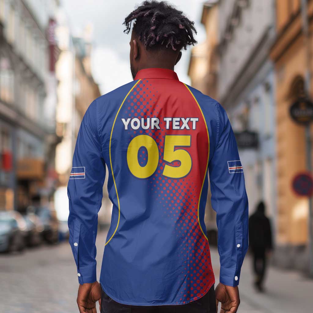Custom Cape Verde Football Long Sleeve Button Shirt Blue Sharks Make History