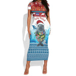 Personalised Cape Verde Christmas Short Sleeve Bodycon Dress Manatee Feliz Natal