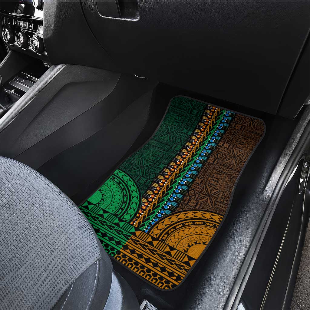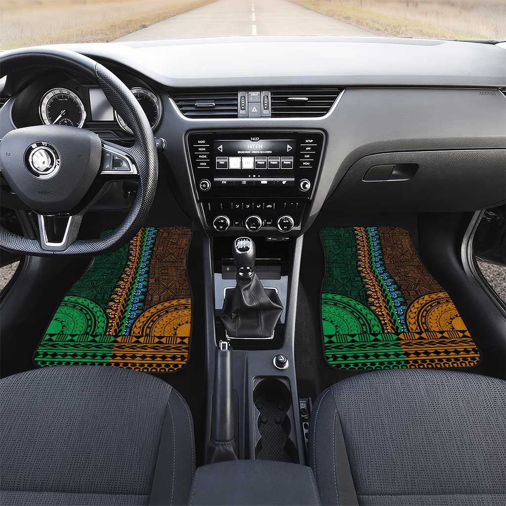 Green-gold Dashiki and Tapa Pattern Car Mats Africa-Polynesia Together Culture