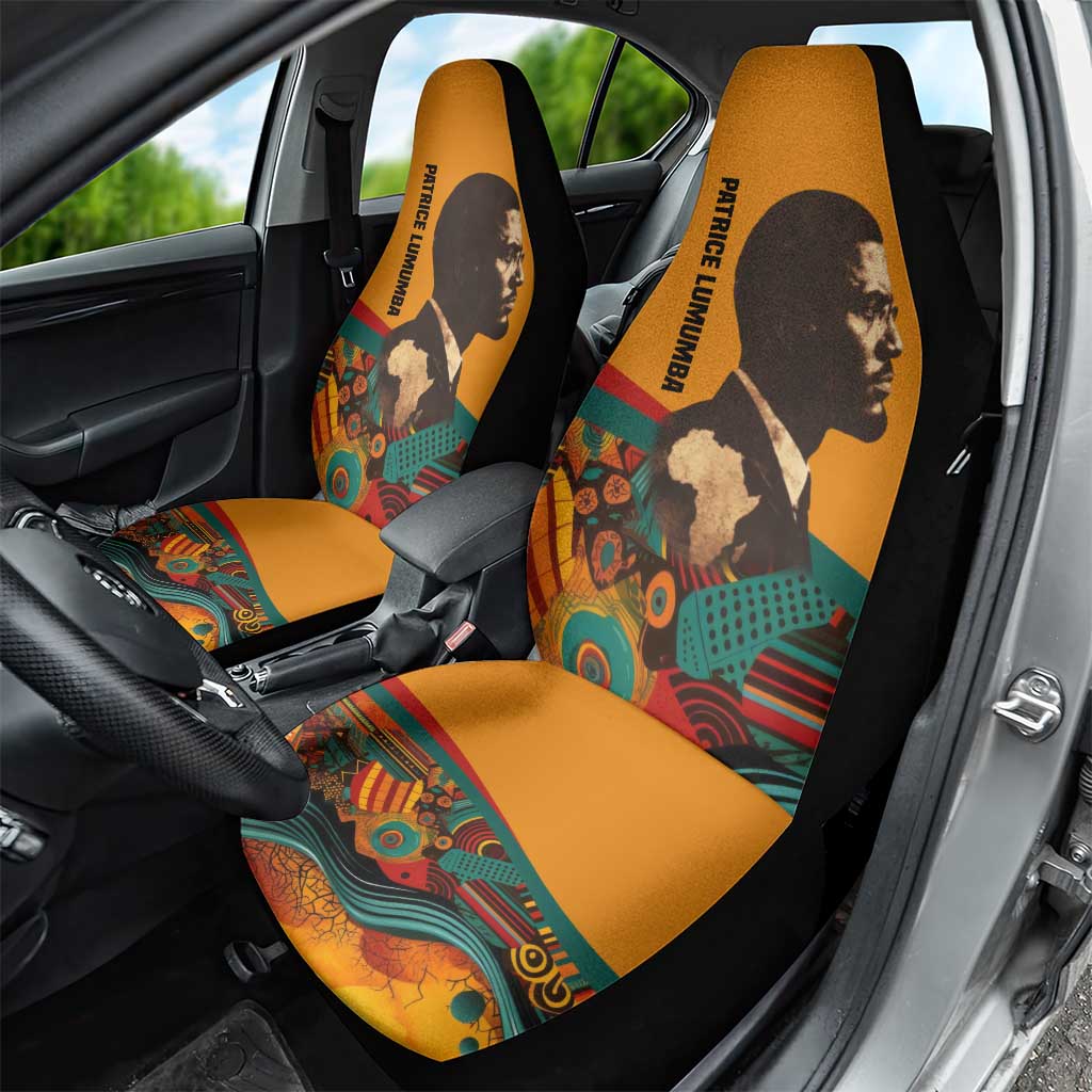 Patrice Lumumba Car Seat Cover with Profile Portrait and Bold Africa Will Rise Statement
