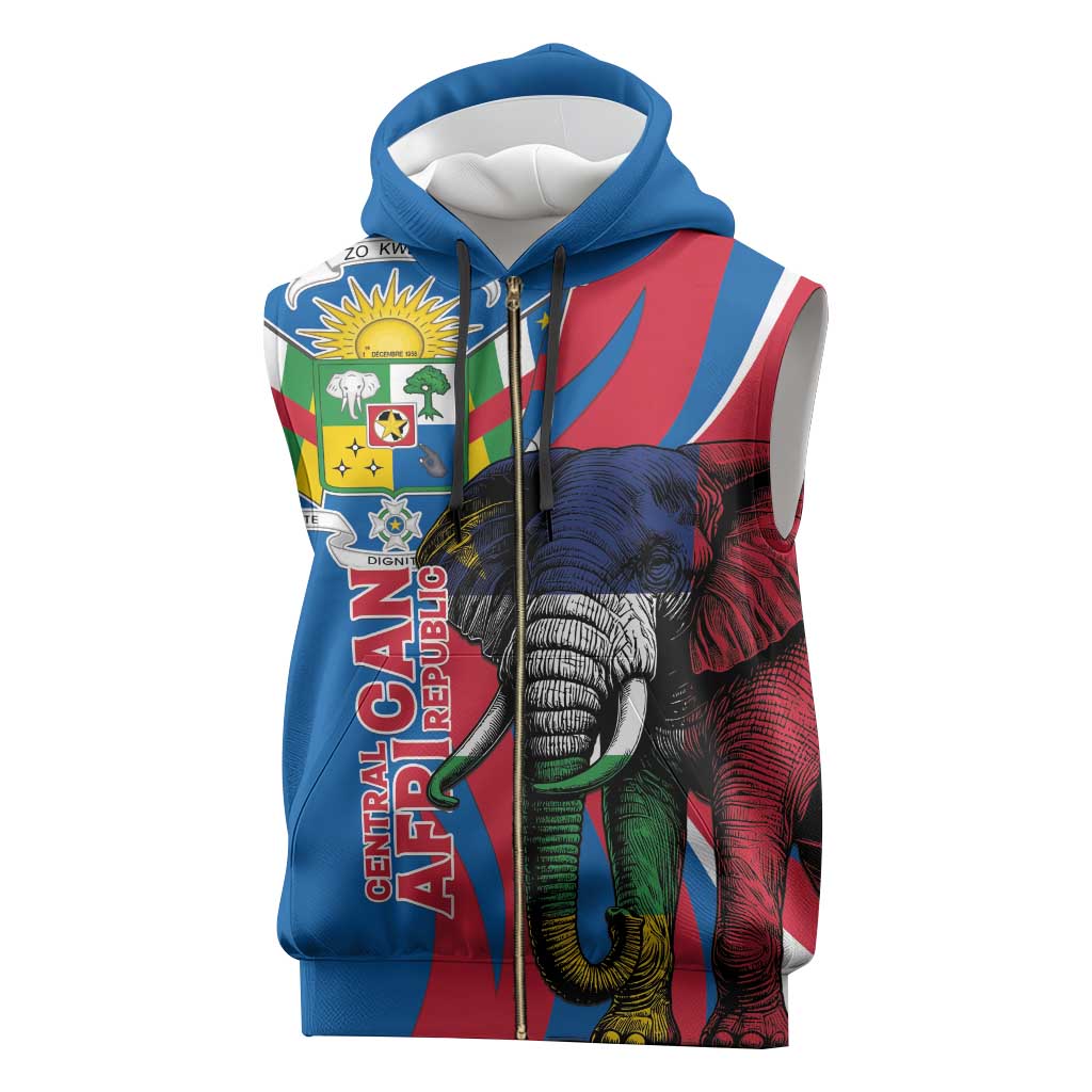 Personalised Central African Republic Elephant Sleeveless Zip Hoodie Coat Of Arms With Map