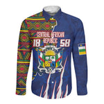 Personalized Central African Republic Coat Of Arms Long Sleeve Button Shirt Kente Pattern