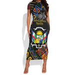 Personalized Central African Republic Short Sleeve Bodycon Dress Protea - African Pattern
