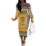Afro Chad Christmas Off The Shoulder Long Sleeve Dress Coat Of Arms With African Pattern