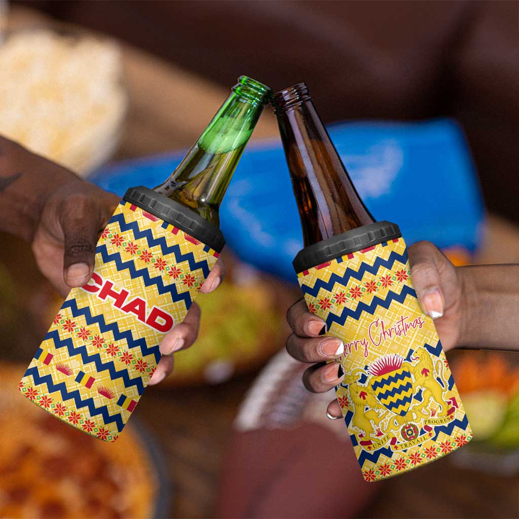 Chad Christmas 4 in 1 Can Cooler Tumbler National Coat of Arms, and Festive Motif