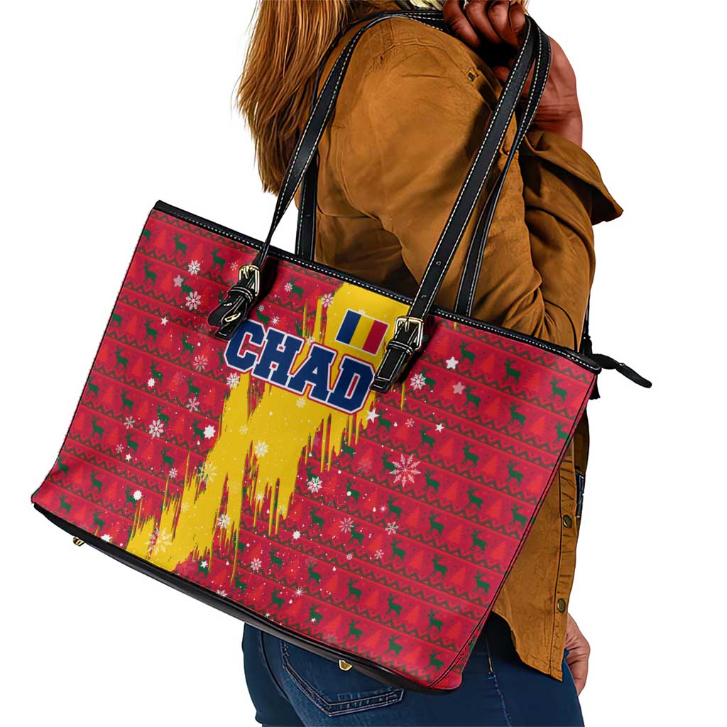 Chad Christmas Leather Tote Bag National Coat of Arms and Snowflake Accents