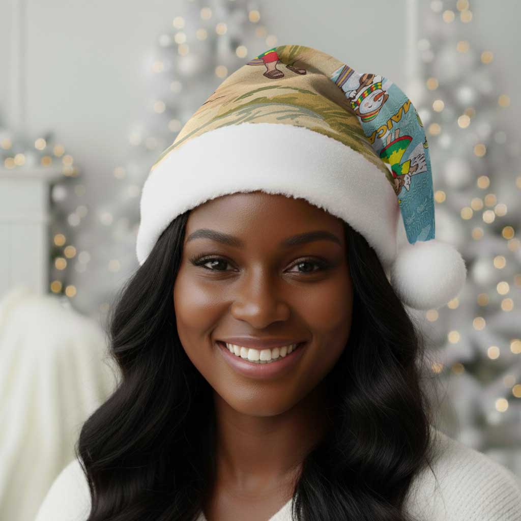 The Jamaica Christmas Santa Hat Rasta Santa Snowman Hammock Angel Palm Trees and Tropical Beach is more than just a holiday accessory—it’s a celebration piece designed to bring joy and warmth to your festive season. Made with premium polyester and a fluffy sherpa trim, this hat combines holiday tradition with the quality craftsmanship of African Pride.