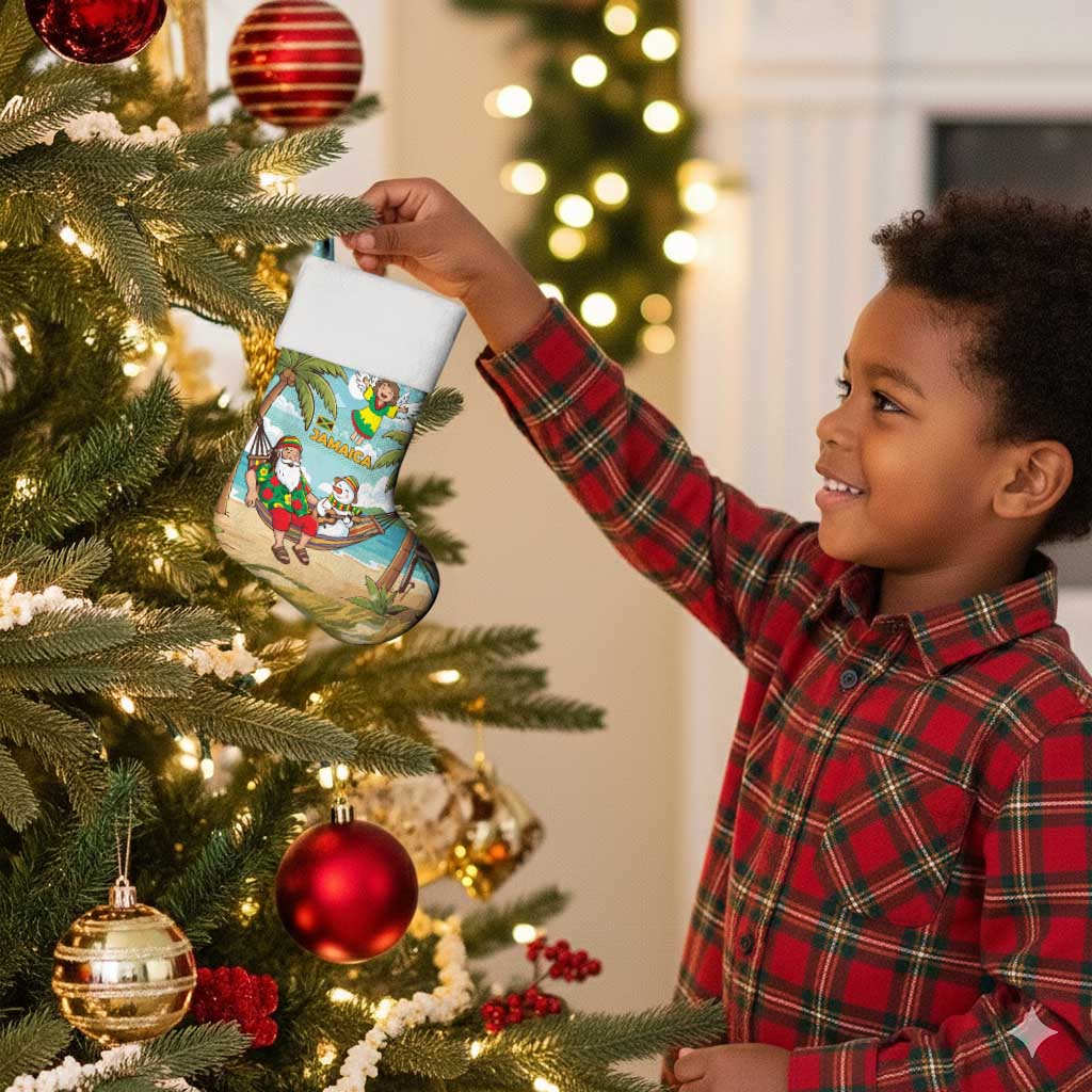 Jamaica Christmas Stocking Rasta Santa Snowman Hammock Angel Palm Trees and Tropical Beach