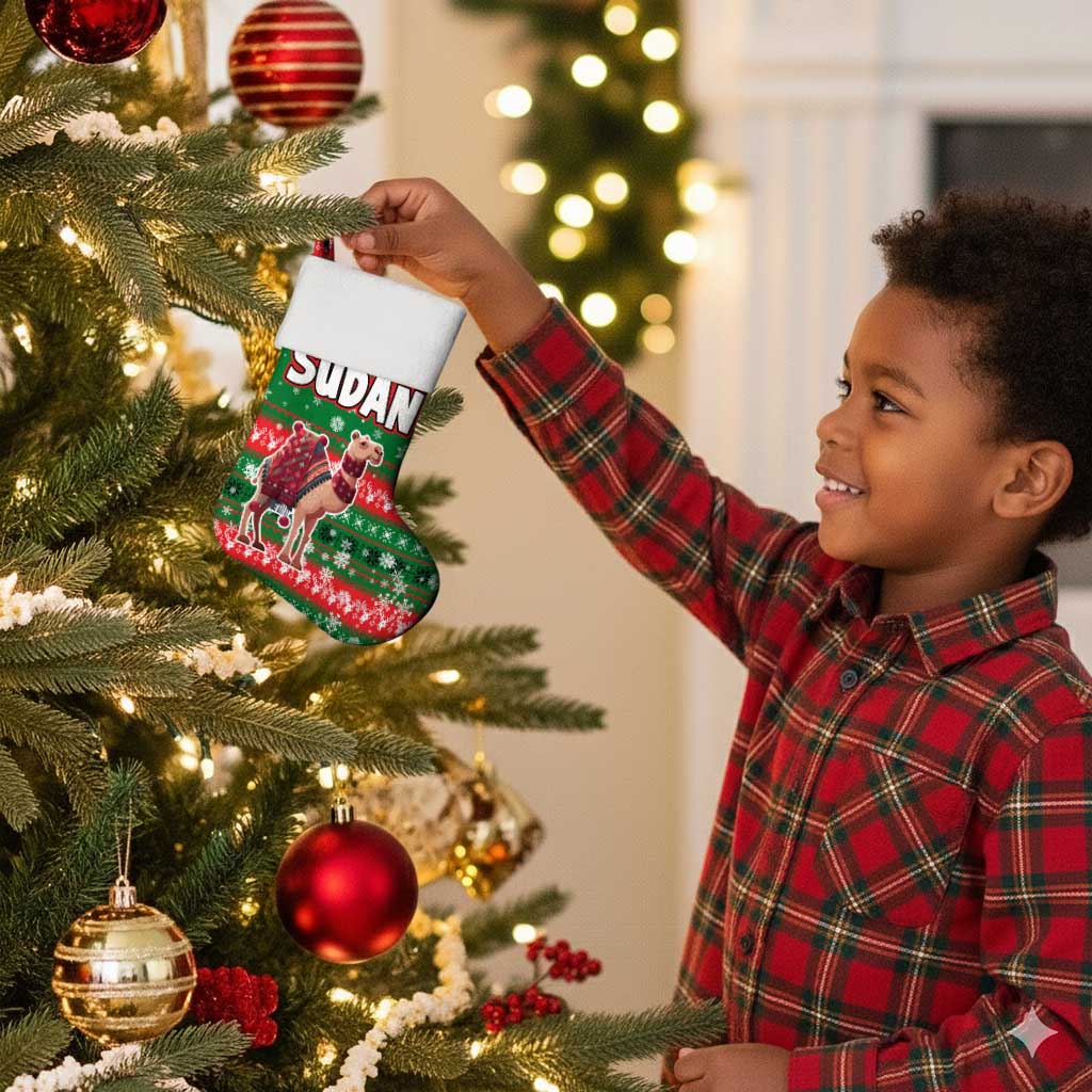 Sudan Christmas Stocking Green Red Xmas Camel Snowflake and Coat of Arms