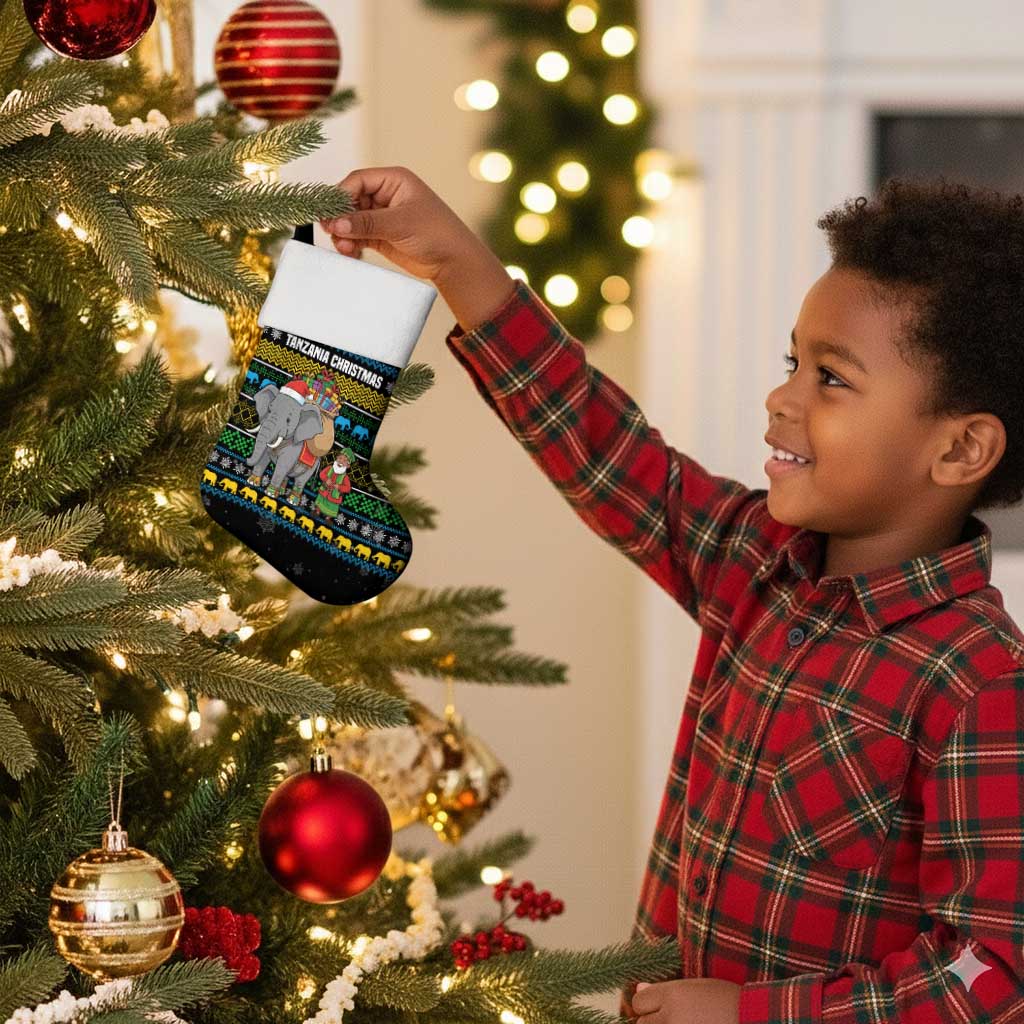 Tanzania Christmas Stocking African Santa Riding Elephant Snowflakes