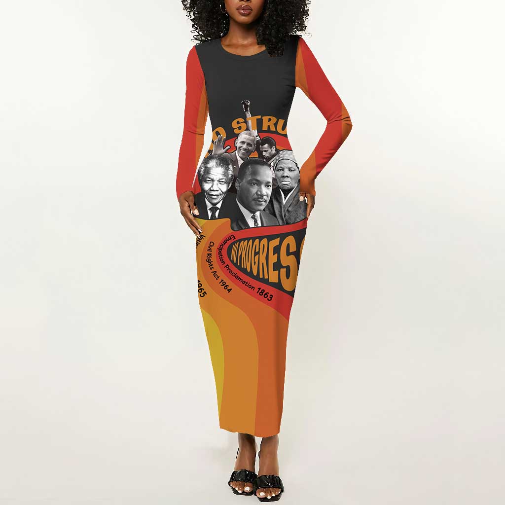 Civil Rights Leaders African American Long Sleeve Bodycon Dress No Struggle No Progress