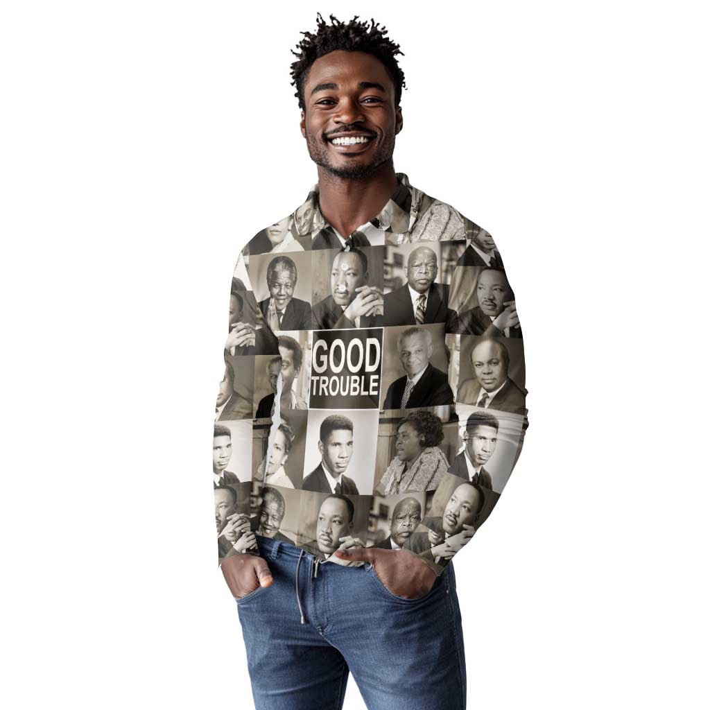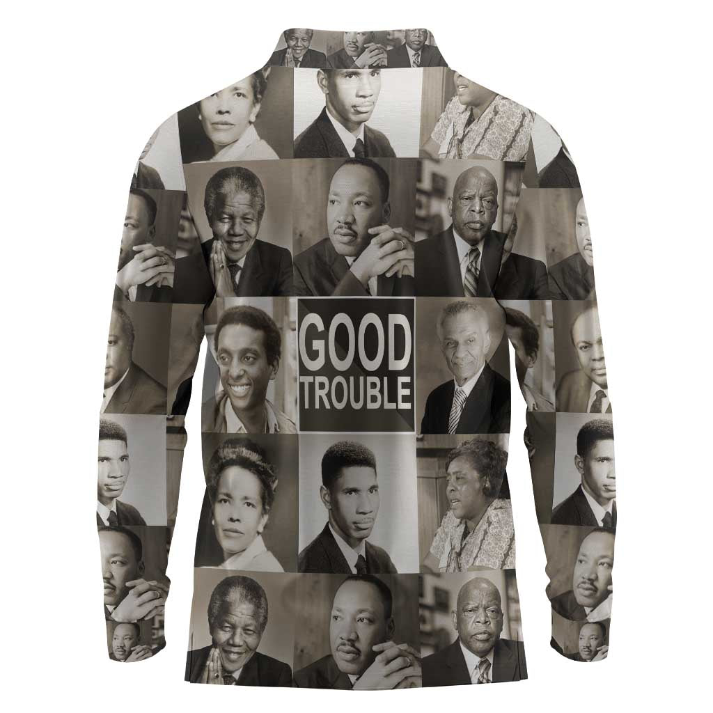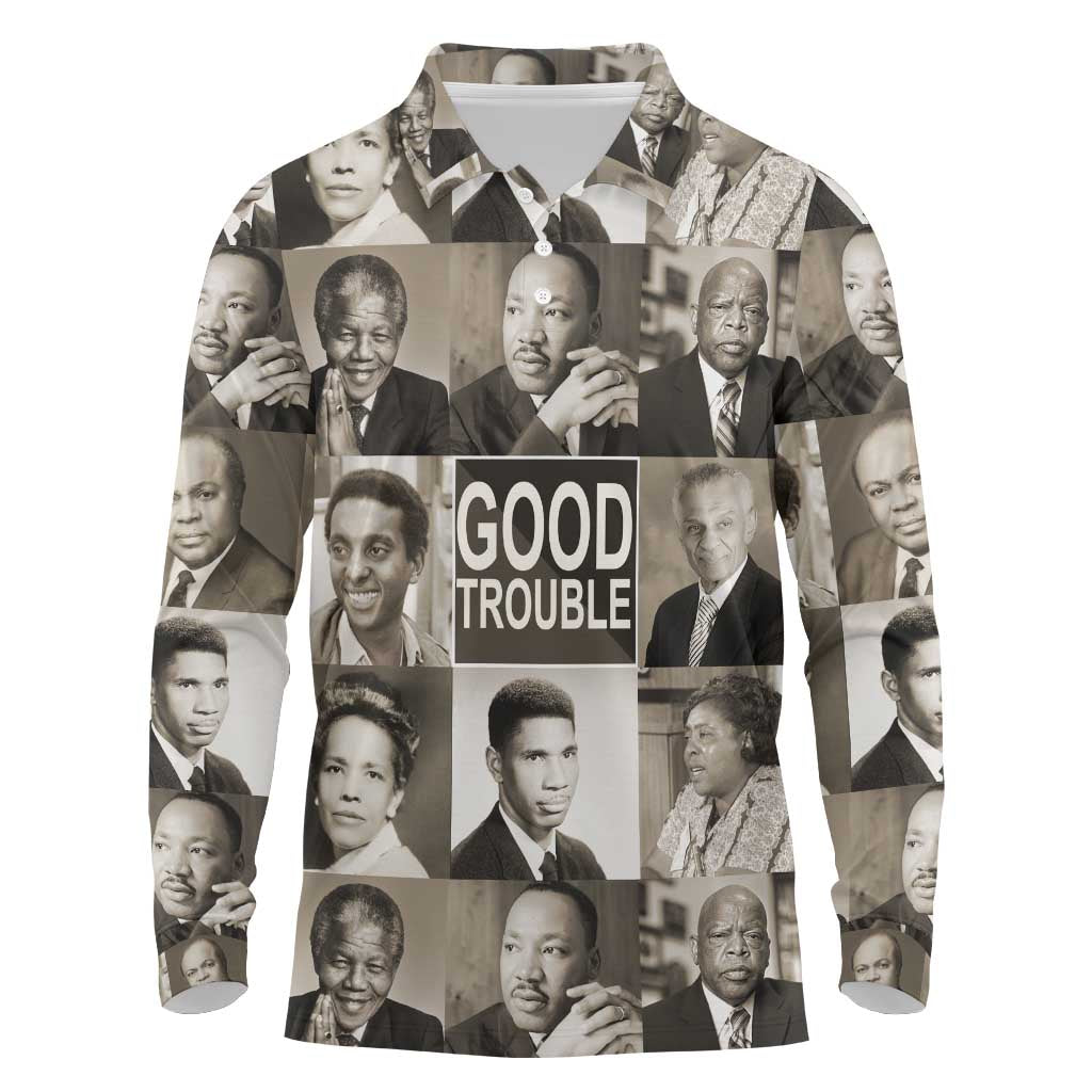 Good Trouble Long Sleeve Polo Shirt Civil Rights Leaders