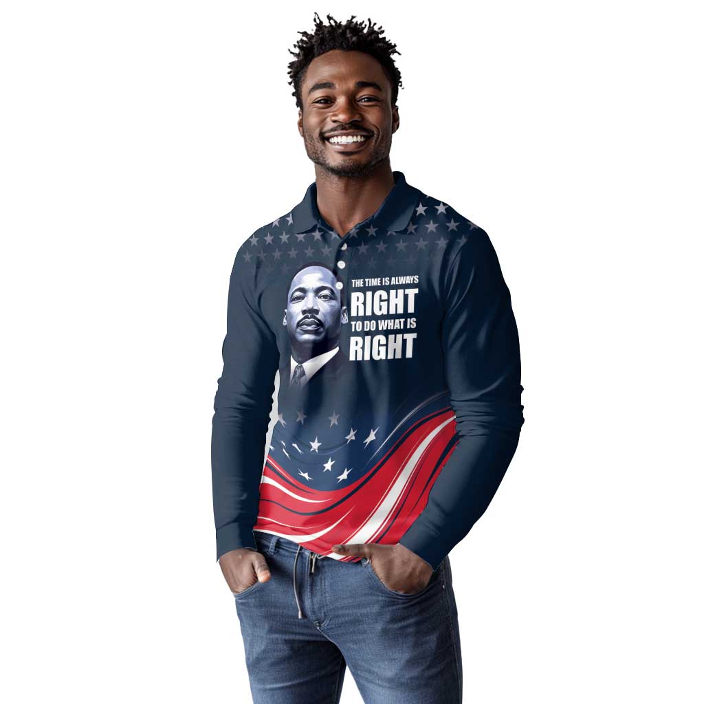 Honor MLK African-American Civil Rights Leaders Long Sleeve Polo Shirt The Time Is Always Right To Do What Is Right