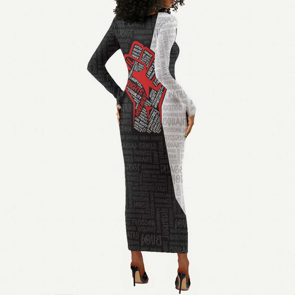 Personalized Civil Rights Movement Justice Fist Long Sleeve Bodycon Dress DT02