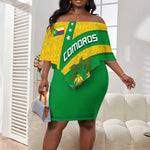 Comoros Off Shoulder Short Dress - National Flag Lemur Design and Ylang Ylang Flower Pattern