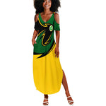 Comoros Summer Maxi Dress - Green Black Yellow Swirl Design and National Emblem Pattern