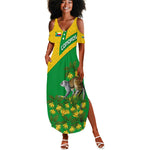 Comoros Summer Maxi Dress - National Flag Lemur Design and Ylang Ylang Flower Pattern
