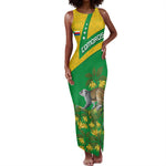 Comoros Tank Maxi Dress - National Flag Lemur Design and Ylang Ylang Flower Pattern