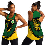 Comoros Women Racerback Tank - Green Black Yellow Swirl Design and National Emblem Pattern