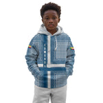Comoros Kid Hoodie - Blue and White Traditional Geometric Pattern and National Flag Detail
