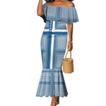 Comoros Mermaid Dress - Blue and White Traditional Geometric Pattern and National Flag Detail