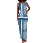 Comoros Tank Maxi Dress - Blue and White Traditional Geometric Pattern and National Flag Detail TS04